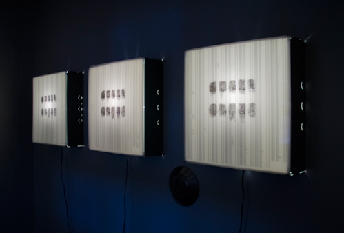 2009, 2008, 2007 – SURVEILLANT ASSEMBLAGE, 2011, MOTIONED SENSORED LIGHTBOXES, INSTALLATION VIEW, CARLETON UNIVERSITY ART GALLERY
